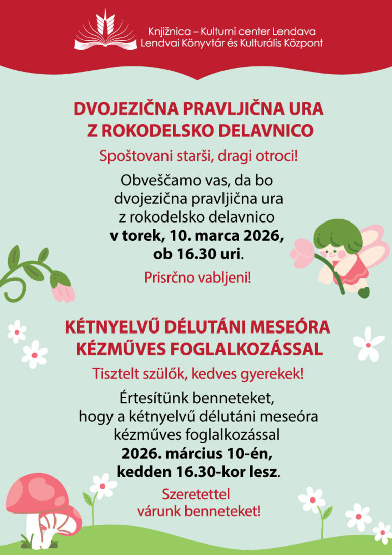 Dvojezična pravljična ura z rokodelsko delavnico / Kétnyelvű délutáni meseóra kézműves foglalkozással