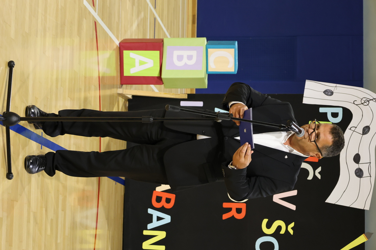 »Dragi prvošolci, danes je poseben dan – dan, ko naši najmlajši prvič prestopajo prag šole. To je velik korak, poln pričakovanj, veselja in tudi malce treme. Pred vami je čudovita pot učenja, raziskovanja in prijateljstva. Vsak dan boste odkrivali nekaj novega – od črk in števil do skrivnosti narave, predvsem pa boste spoznavali, kako lepo je deliti znanje, igro in veselje z novimi prijatelji.«