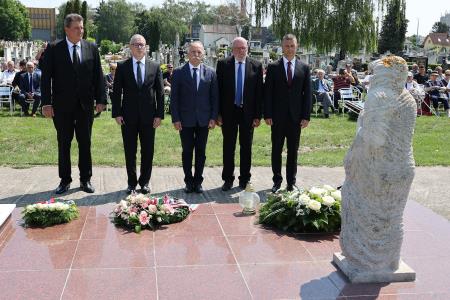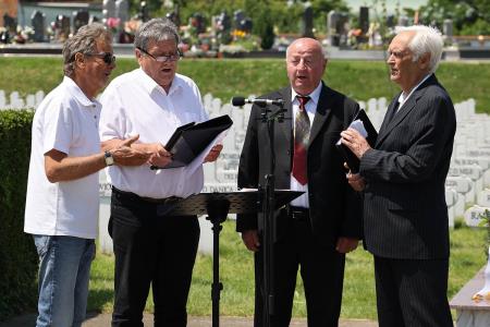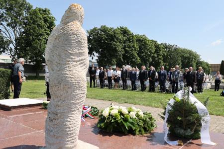 Redno srečanje preživelih taboriščnikov, njihovih svojcev in prijateljev ter vseh, ki skrbe za to, da se zločin ne pozabi, je bilo tudi letos na pokopališču Taborišča Sárvár. Na začetku slovesnosti so najprej prisotne delegacije položile vence k spomeniku umrlim v taborišču Sárvár.