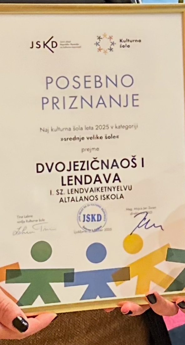 Naziv Naj kulturna šola leta 2025 v kategoriji srednje velikih šol osvojila Dvojezična osnovna šola I Lendava.