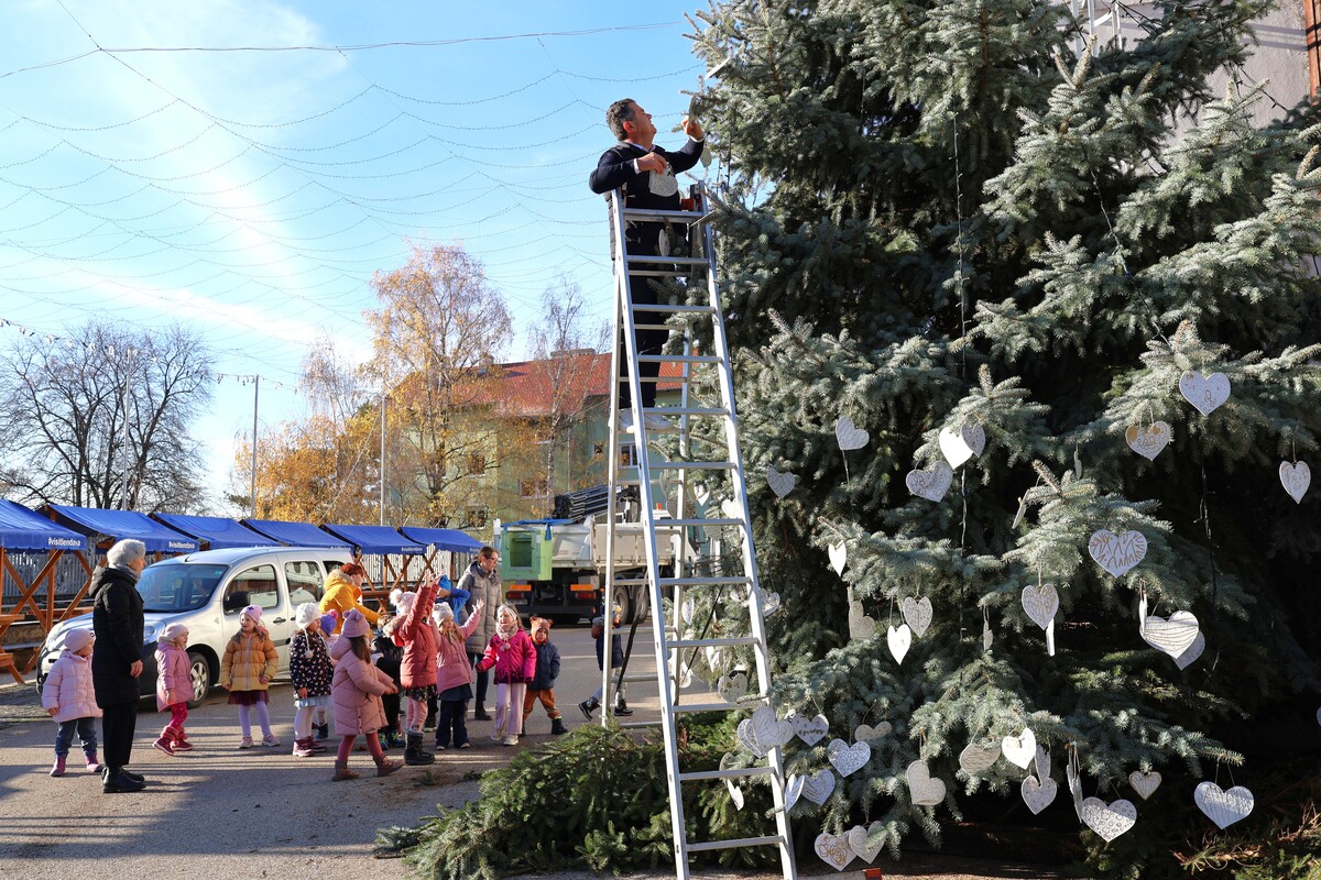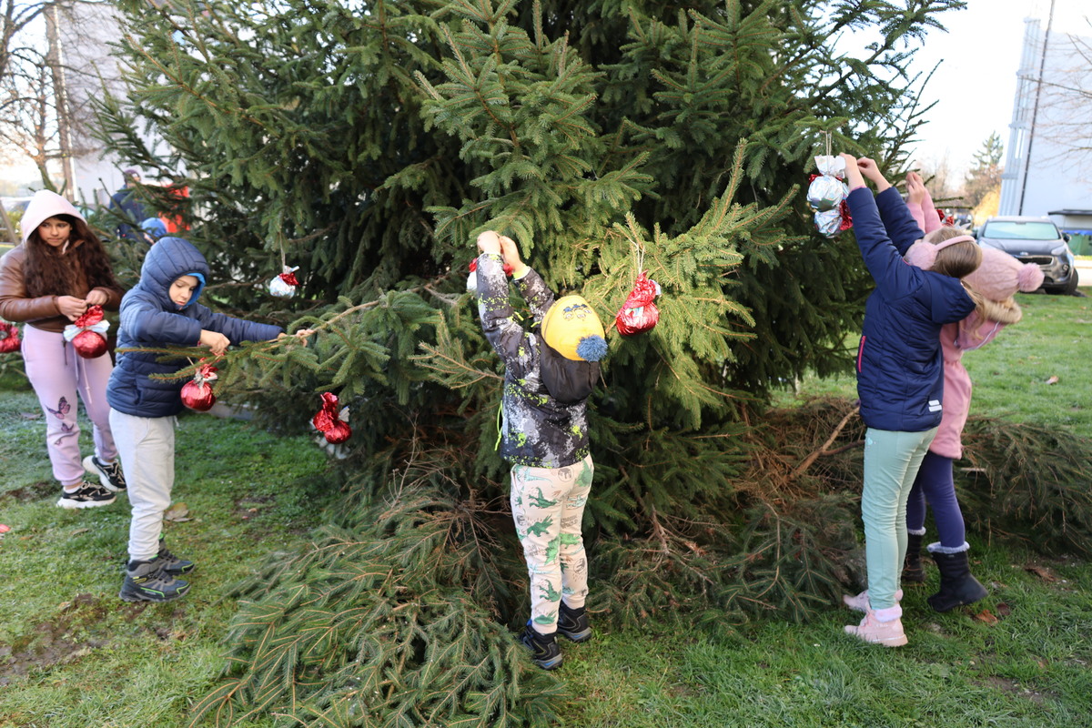 FOTO: Otroci okrasili smreke po mestu in pričarali praznično vzdušje