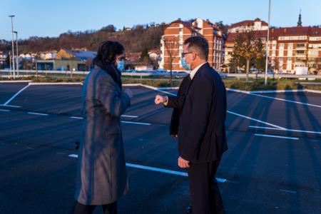 Pot ga je vodila do stavbe nekdanje srednje šole, kjer namerava Občina Lendava vzpostaviti dnevni center za aktivno preživljanje starosti ter varovana stanovanja. Postanek so minister in predstavniki Občine Lendava opravili ob tabli, ki označuje lokacijo, kjer bo s strani Javnega stanovanjskega sklada RS in pomočjo evropskih sredstev zgrajenih do 70 novih javnih najemnih stanovanj.