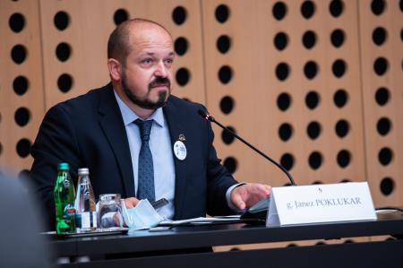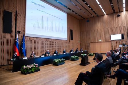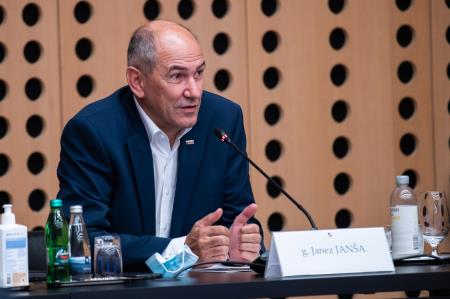 Po uvodnih predstavitvah dr. Milana Kreka (NIJZ), ministra za zdravje Janeza Poklukarja in ministra za gospodarski razvoj in tehnologijo Zdravka Počivalška je zbrane v povezavi s prvo tematiko srečanja, to je situacijo s COVID-19 nagovoril tudi predsednik vlade Janez Janša.
