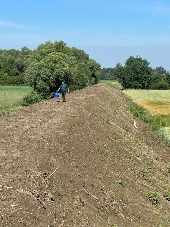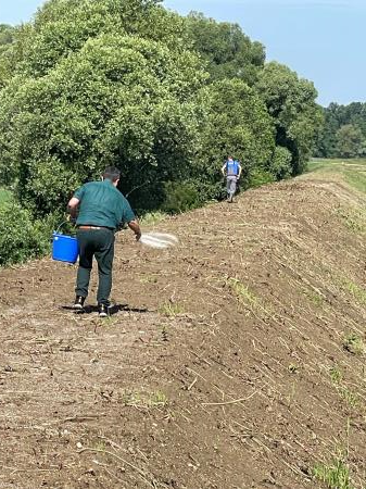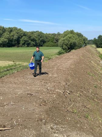 Ob zaključku investicije nadvišanja nasipa ob Muri v Benici je danes župan Občine Lendava Janez Magyar skupaj z izvajalci del, Pomgrad - VGP d.d., sejal belo deteljo in druge vrste travniških rastlin, ki bodo v prihodnosti služile kot paša za čebele.