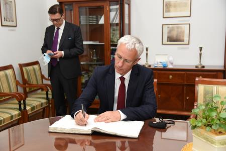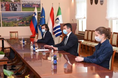 Magyar Janez polgármester és dr. Kasaš Mihael, a községi igazgatóság igazgatója a városházán meleg és baráti hangulatban beszélgetett Soltész Miklós államtitkárral, Dávid Andor Ferenc Magyarország szlovéniai nagykövetével, Máthé László Eduárd lendvai főkonzullal és dr. Czikó Anita lendvai konzullal.
