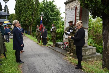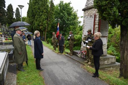 Anna Tyurina, az Orosz Föderáció Szlovéniai Nagykövetségének titkára, Rozina Nemec és Ivan Koncut, Lendva Község alpolgármesterei ma délelőtt a Szlovén Katonaság díszőrsége kíséretében a lendvai felső temetőben megkoszorúzták az elesett orosz katonák emlékművét.
